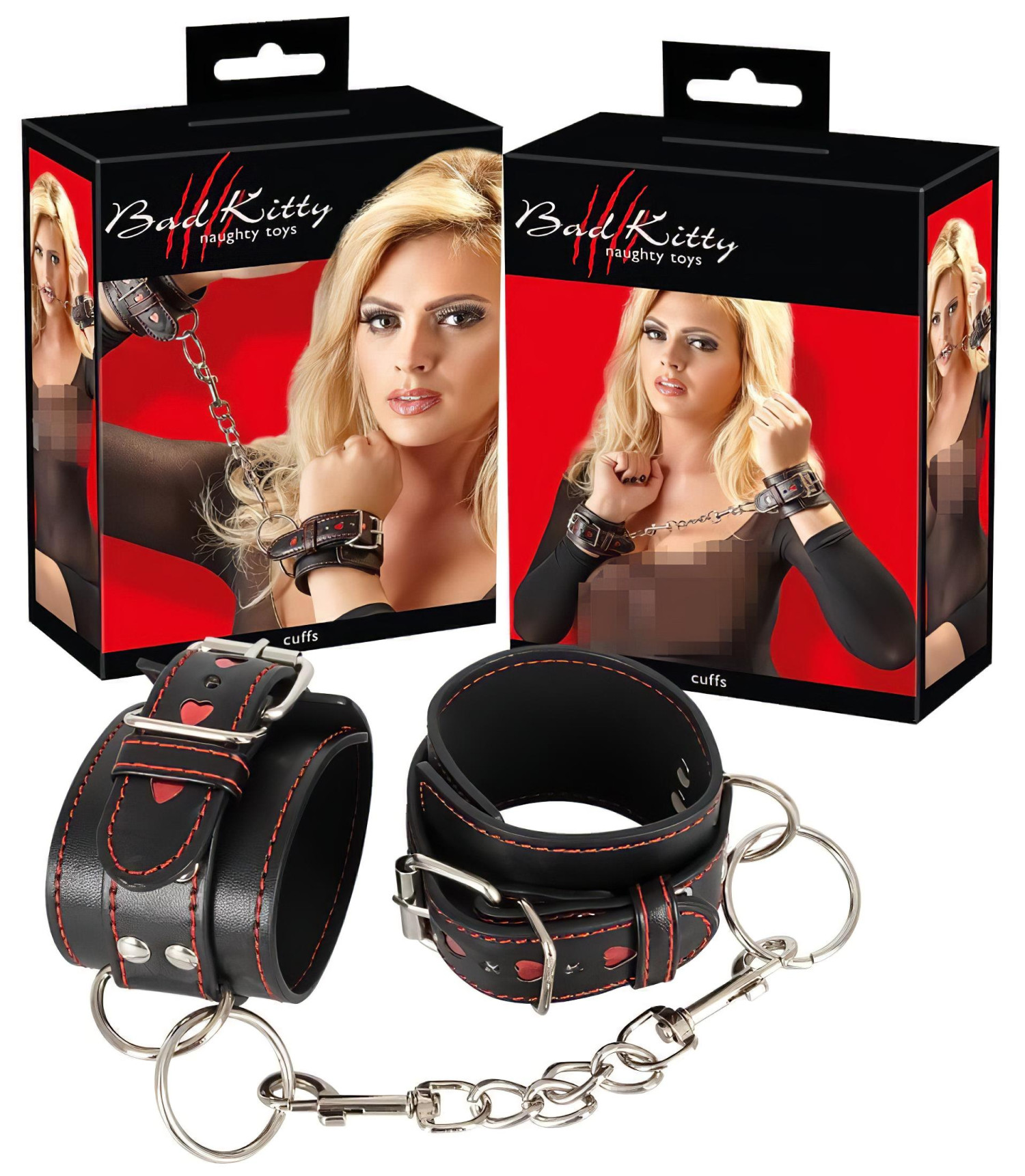 Opravdu romantická sada pout, díky které zažiješ vzrušení ze ztráty kontroly! pouta jsou vyrobená z kvalitního materiálu s efektem kůže, po celém obvodu je zdobí dekorativní, třpytivé srdíčka a červené prošívání. Jsou doplněna kovovými D-kroužky a očky. Obě pouta spojuje krátký kovový řetízek, který má na obou koncích malé kovové karabiny, takže ho můžeš snadno odepnout.Proč si je zamiluješ?Měkký materiál s koženým efektemNeodírá pokožku (při běžném používání)Ozdobeno třpytivými červenými srdíčkyDá se zapnout na kovovou sponuPevné D-kroužky bezpečně drží řetízekKrátký kovový řetízek umožní trochu pohybu, ale pořád pěkně svazujeŘetízek jde odepnout – na obou koncích má karabinyNa co dát pozor:Než začnete, domluvte si spolu bezpečnostní slovo – jakmile ho někdo vysloví, okamžitě přestáváte! Slovo může být jakékoli, důležité je, aby oba věděli, že znamená stop.Pouta utahuj jen tak, aby to nebolelo a nevznikla žádná zranění.Použití:Připoutej nebo svaž svou drahou polovičku těmito skvělými pouty! Pamatuj, že hra je hra jen do té doby, dokud to oba baví. Domluvte si bezpečnostní slovo a při jeho vyslovení ihned končíte. Jinak je to jen na vaší fantazii, jestli je použijete v ložnici, na zahradě nebo třeba v kuchyni!Specifikace produktu:Černý materiál s vzhledem kůžeOzdobené třpytivými červenými srdíčkyPevný, krátký řetízek ukončený karabinamiKovové spony a D-kroužkyVelikost pout upravitelná kovovou sponou: 17-27 cmŠířka pout: 5,5 cmCelková délka kovového řetízku: 15 cmMateriál: Polyuretan, kov