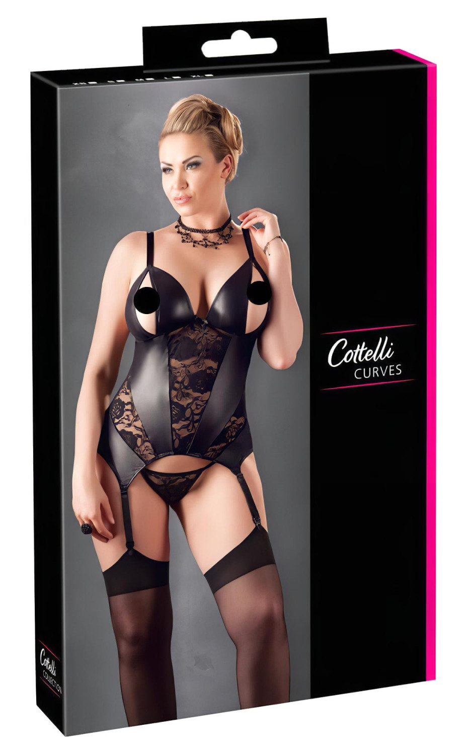 Objev smyslnost a styl v dokonalé kombinaci – tenhle sexy podvazkový top s lesklým wetlook efektem a jemnými krajkovými detaily tě zaručeně okouzlí!Proč si ho zamiluješ?Elegantní design: Vpředu lesklý, hladký wetlook materiál, vzadu úplně průhledný a pružný – tahle kombinace ti dá výjimečný vzhled.Propracované krajky: Jemná, měkká krajka s květinovým vzorem ještě podtrhne tvé ženské křivky.Zeštíhlující švy: Švy ve tvaru paprsků opticky zeštíhlují postavu.Otevřený dekolt: Prsa zůstávají volně – pro odvážný a svůdný look.Nastavitelné pásky: Podvazkové i ramínka si upravíš přesně podle sebe.Ladící tanga: V sadě najdeš i květinová krajková tanga ve stylu T-string.Na co si dát pozor:Per jen ručně v jemném pracím prostředkuNesušit v sušičce, nežehli a nebělSoučástí balení nejsou punčochy; pro kompletní vzhled doporučujeme dokoupit samostatně vhodné punčochy.Co najdeš v balíčku?1× podvazkový top s lesklým wetlook efektem a krajkovými detaily1× ladící květinová krajková tanga ve střihu T-stringCo ještě vědět?Složení materiálu: 60 % polyamid, 30 % polyester, 10 % elastanBarva: ČernáProvedení: Vpředu lesklý wetlook, vzadu průhledný elastický materiál, otevřený dekolt, nastavitelné ramínka a podvazkové páskyOzdoby: Jemné měkké květinové krajky a zeštíhlující švy