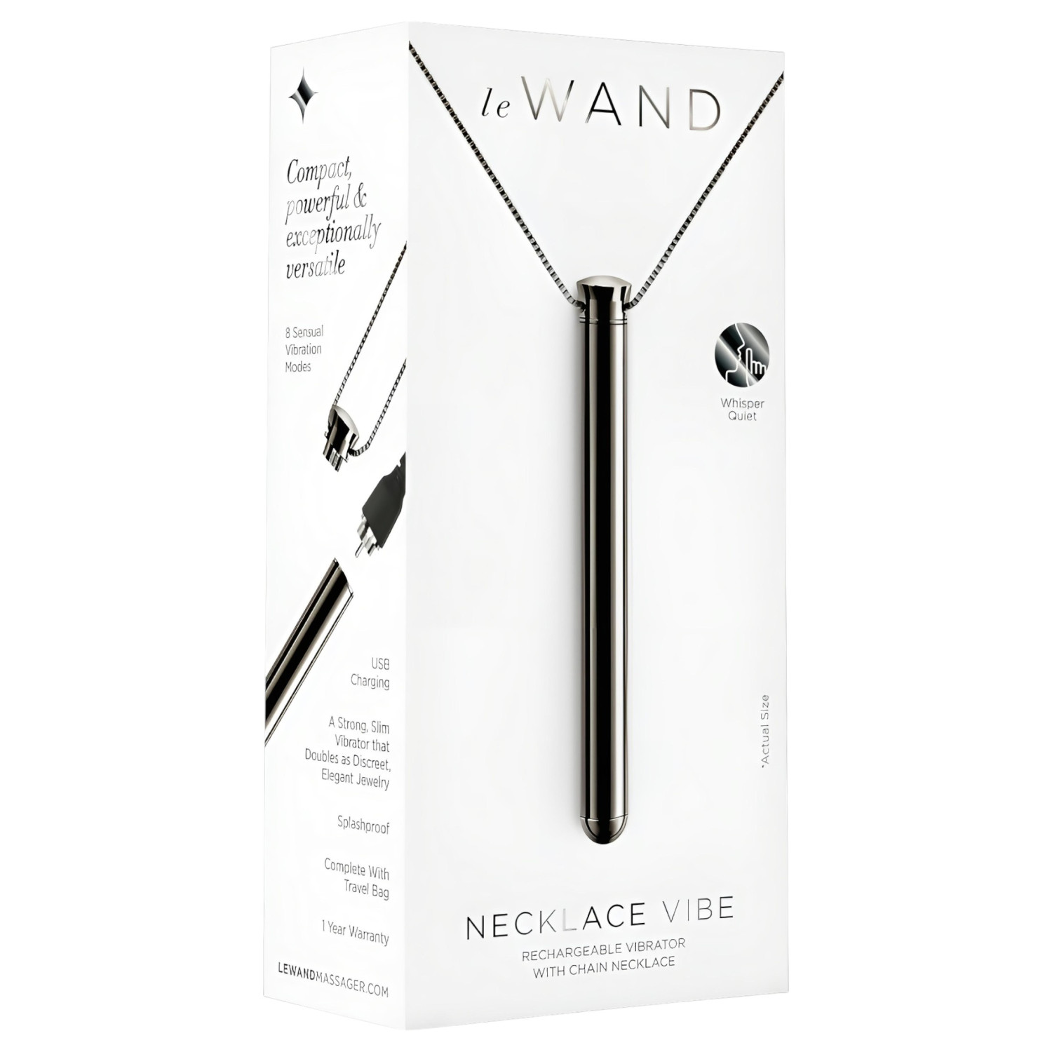 Objevte dokonalou kombinaci luxusu a potěšení s tímto elegantním vibrátorem, který lze nosit jako náhrdelník – styl a rozkoš v jednom jediném doplňku!Proč je náhrdelník s vibrátorem le Wand dobrý?Tento krásný vibrátor ve tvaru přívěsku kombinuje dvě funkce: můžete jej nosit jako diskrétní šperk, a zároveň poskytuje rychlou přístupnost k intimnímu potěšení – takže si můžete užívat rozkoš kdykoli, ve stylu a pohodlí.Proto zákazníci milují náhrdelník s vibrátorem le WandDiskrétní design šperku – můžete jej nosit jako přívěsek; není třeba ho skrývat.Čistá elegance – štíhlý, lesklý tyčový design dává luxusní vzhled.Výkonný, přesto tichý motor – 8 vibračních režimů, ovládání jedním tlačítkem.Nerezová ocel – s pozlaceným sponou a 66 cm řetězem, odolný a vysoce kvalitní.Dobíjecí přes USB – není potřeba žádné baterie, praktické a ekologické.Univerzální použití – vhodný pro stimulaci klitorisu, bradavek, nebo u mužů žaludu a varlat.Kompatibilní s jakýmkoli lubrikantem – ocelový povrch lze použít s vodními, silikonovými nebo hybridními lubrikanty.Obsah balení1 ks elegantní náhrdelník s vibrátorem1 ks nerezový řetěz (66 cm)1 ks USB nabíjecí kabelVlastnosti produktuTvar: čistý, elegantní tyčový designVzhled: luxusní šperkNabíjení: vestavěné baterie nabíjené přes USBVibrace: 8 režimůŘetěz: 66 cm, nerezová ocel, bez nikluOvládání: jednokotové, intuitivní použitíČištění: snadno se čistí, není vodotěsnýVelikost: délka: 9,4 cm; průměr: 1 cmHmotnost: 25 gBarva: černáMateriál: nerezová ocel s pozlaceným konektoremJak používatZapněte přístroj dlouhým stisknutím tlačítka a krátkými stisknutími přepínejte mezi vibračními režimy. Je to jednoduché ovládání, ale pokud je to nutné, rádi zkontrolujeme, zda je tento návod přesný vzhledem k skutečné funkci produktu – pokud máte manuály nebo informace od výrobce, prosím podělte se s námi!OvládáníProdukt se ovládá jedním tlačítkem: dlouhé stisknutí = zapnutí/vypnutí, krátkými stisky přepínáte mezi vibračními režimy.Nabíjecí konektorUSB nabíjecí konektor se nachází na spodní části zařízení, potřebný kabel je součástí balení.Na co si dát pozor při použití náhrdelníku s vibrátorem le Wand:Před a po použití důkladně vyčistěte a dezinfikujte.Přístroj není vodotěsný – při čištění dávejte pozor, aby se elektrické části nedostaly do kontaktu s vodou.Doporučení pro čištěníMyjte jemnými mýdly a teplou vodou, poté opláchněte a nechte oschnout. Doporučuje se použití speciálního čisticího prostředku (8718627520062) – lze objednat samostatně.